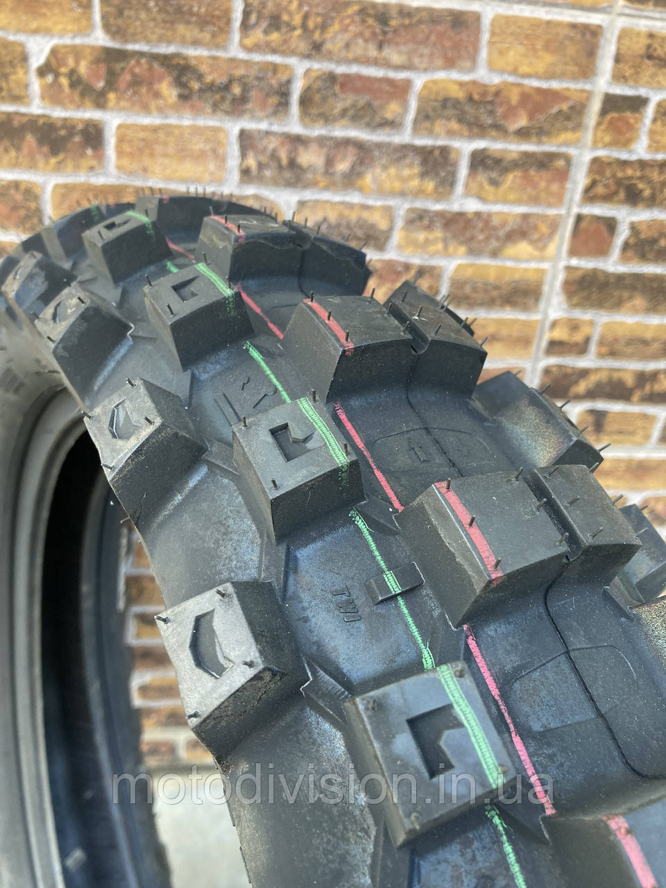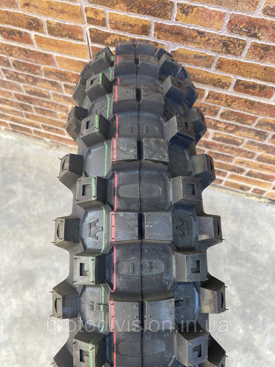 Шину можна ідентифікувати за характерними зеленими та червоними смугами; вона також доступна у розмірах Junior та Pitcross MX.